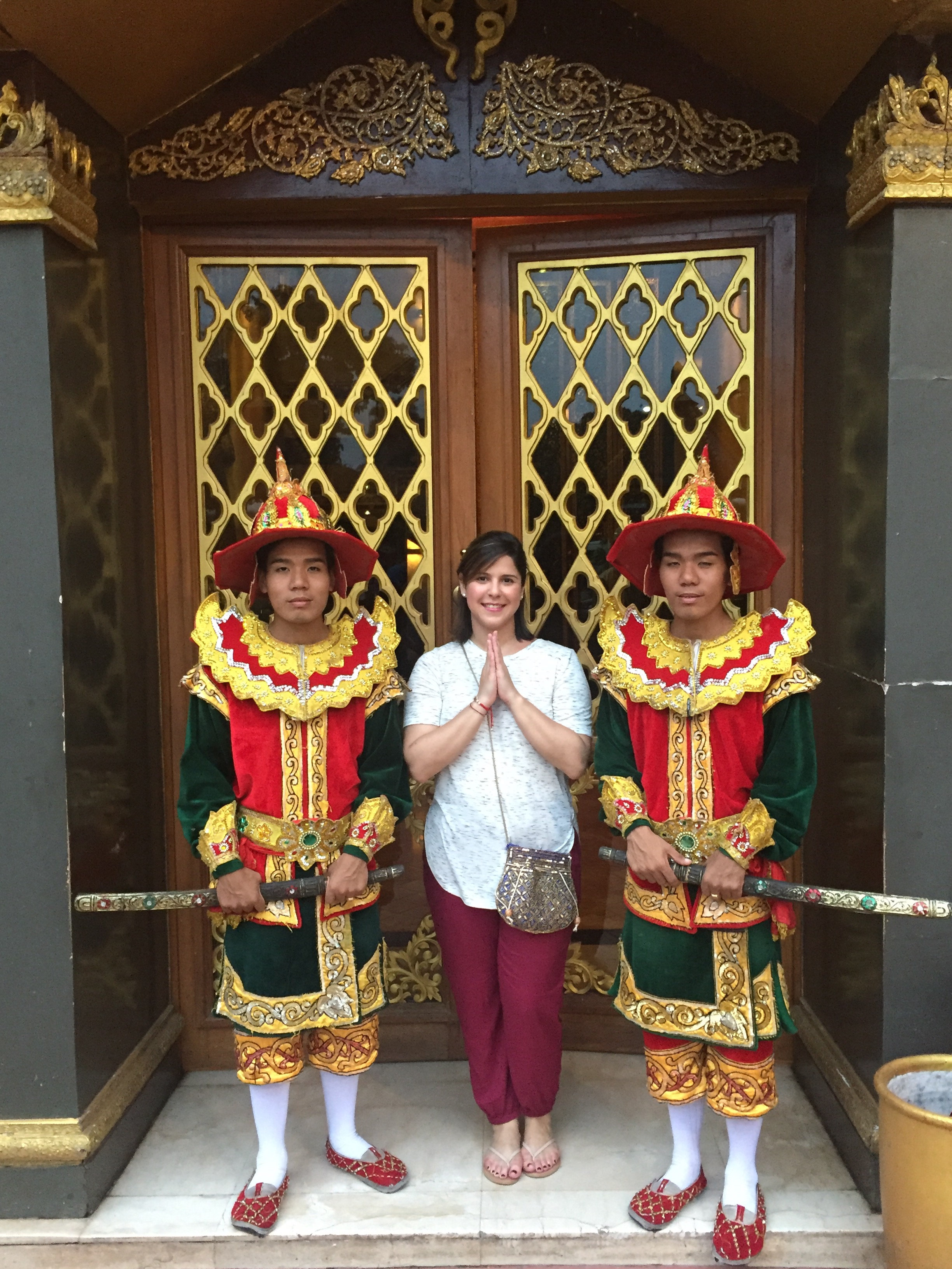 We had to take a shower (it was reallyyy really hot!), a nap (so much heat makes you tired) and get all set to go to a traditional Burmese dance and buffet at Karaweik. Karaweik is a floating restaurant and it is really beautiful, had never seen something like that. There are even guards at the entrance of the Palace to lead you in—really cool! The beauty of its place just extent to the interior, and we were delight with a beautiful show…No regrets!