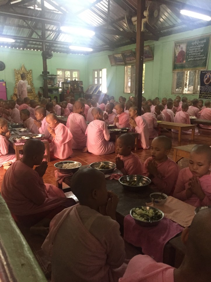 The next day with Tun Tun picked us up at our hotel. Our first stop was the Public Market. It was full of people, and you can find anything: chicken, fish, fruits; textiles, flowers (millions of them!), and that awesome vibe and energy that you could only sense in such place! Loved the experience!! After that, he took us to see the White Elephant (it’s not really white, but at some point I thought it was going to be), and to a Buddhist school for orphan girls in which my heart broke! They are all sooo beautiful, and they sang together before starting to eat.