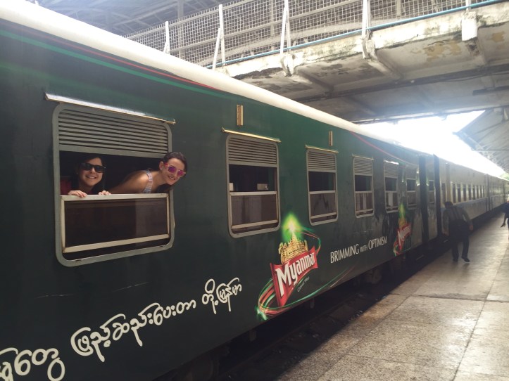 From there, we had to pick up our bags, because we were going to take an 18-hour-train! Oh, yeah, you read that correctly, 18 hours by train from Yangon to Bagan! I think this is one of the highlights of this trip—18 hours in a train with no air conditioner, or beds, just enjoying the views (before it got dark), and I don’t regret a bit of it. It was fascinating to go through the different towns, to see the kids running next to the train, seeing locals and tourists together. I cannot say that it was easy, cause it was not, AT ALL! But I had my mind set to enjoy this opportunity, and I did… I read “The Girl on the Train”, the whole book! Finished it by midnight (started around 5pm) and I loved that book, never expected that outcome…and the main character, such a complex person…I won’t tell you more about the book so you guys read it 😉 Funny thing: a little mouse walking! Jajaja I just told Naty to pick up her shoes and that we were going to be fine jajaja She almost freaked out–and me too! but we had like 15 more hours to go so I couldn’t worry about a little mouse at this point.
