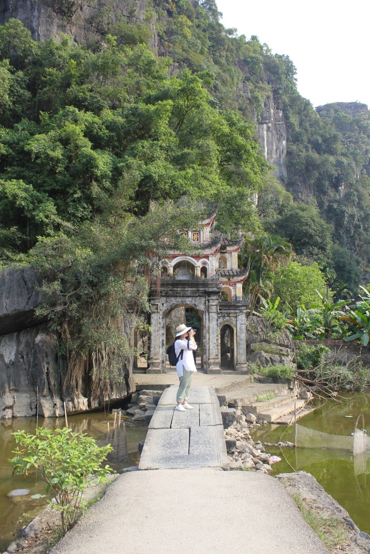 From there we went to the Bich Dong Temple. Mr. David had explained that there are three different Buddhist temples, the first one in the ground and the other two uphill. The entrance of the place was like taken out of the Indiana Jones movie, and I was totally into character with my green pants, white shirt and big hat—oh! And, camera on hand! Lol!