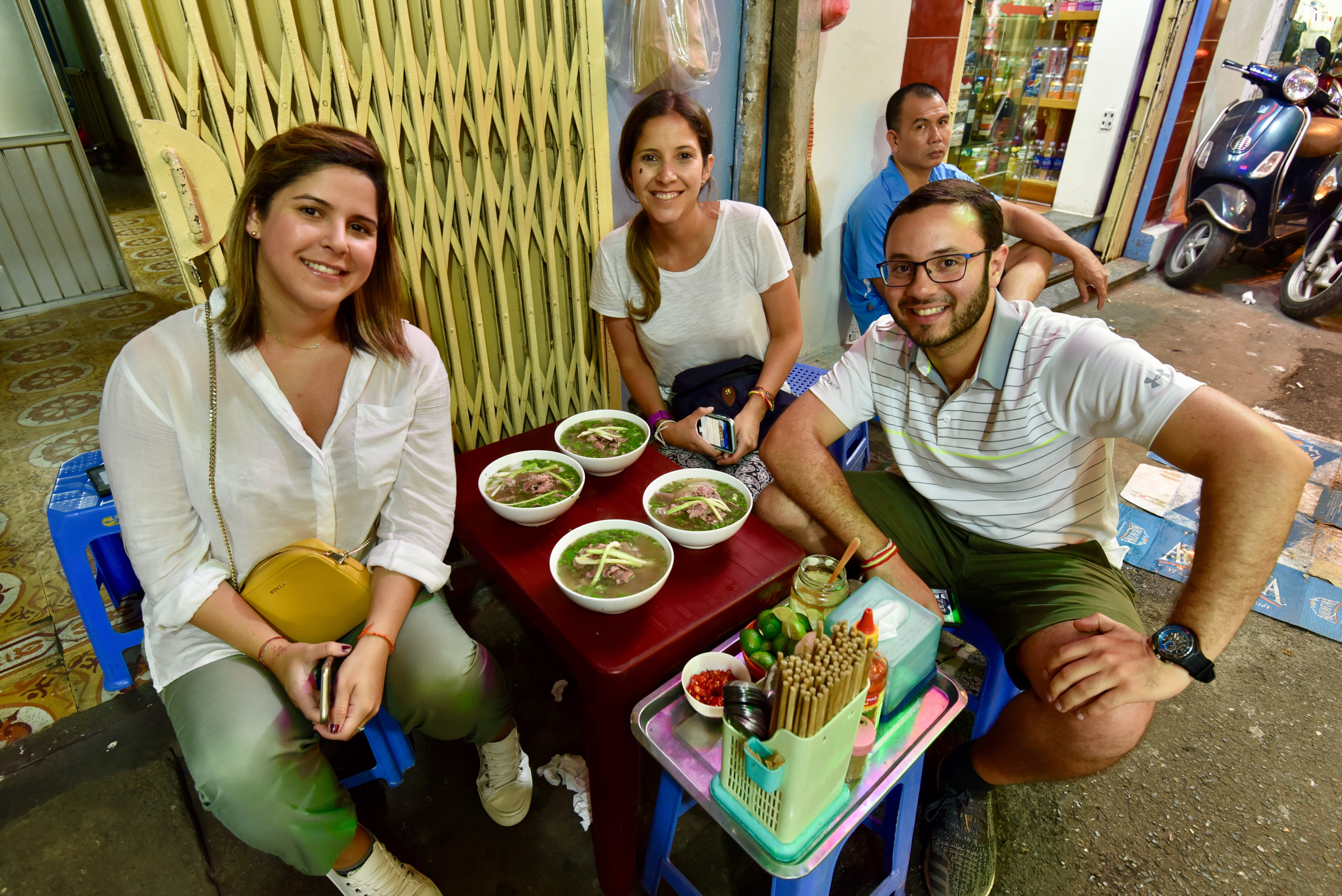 We had dinner in a little street in the middle of what is Hanoi’s downtown, between shops, beauty salons, restaurants…all mixing together in that chaos! We had Pho-Beef Nooddle Soup. The funny thing was the chairs and the tables, as they were miniature, it was like for my 6/4-year-old nieces – Comfortable tho! 😉