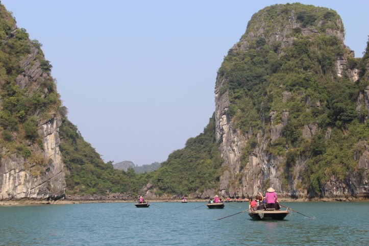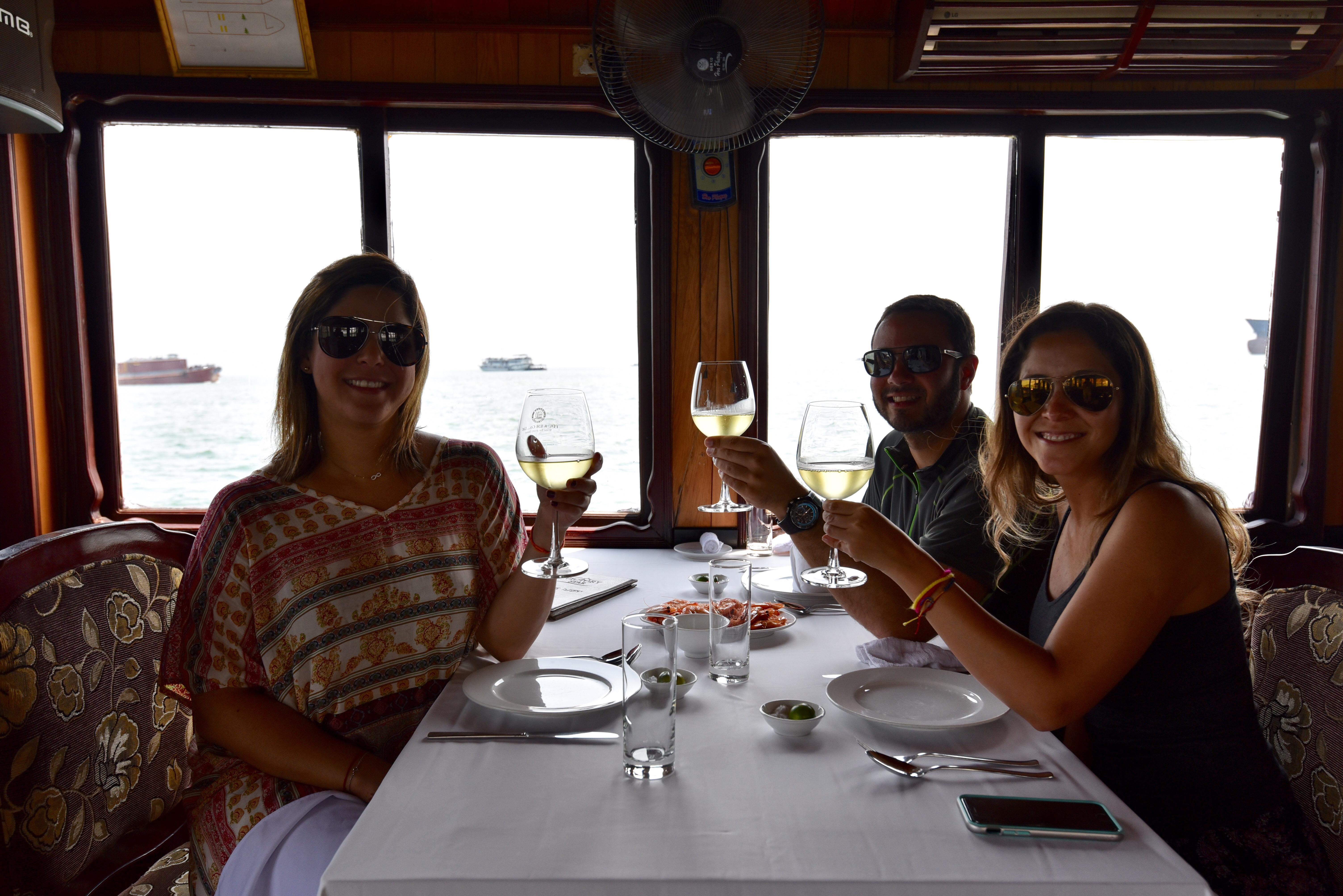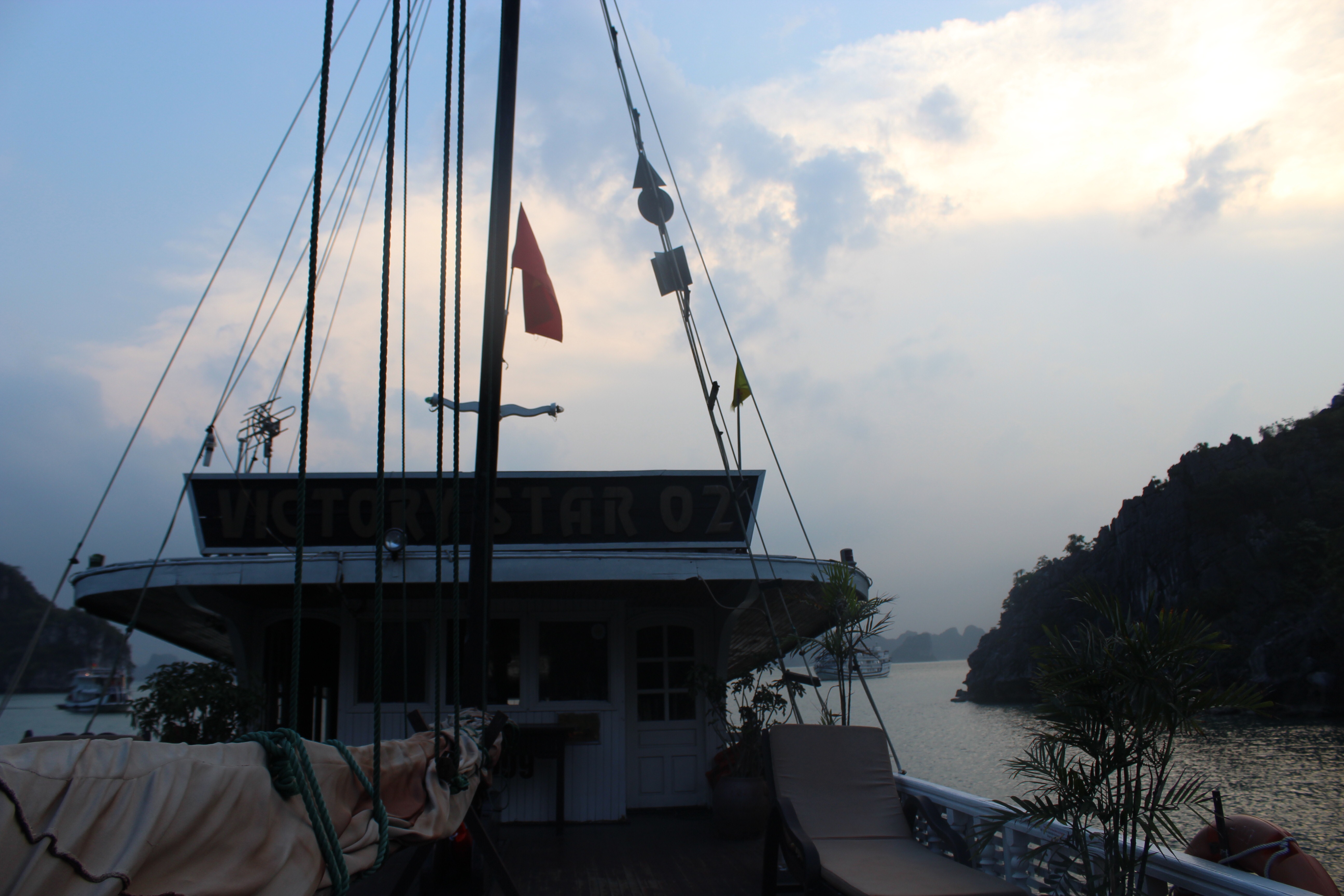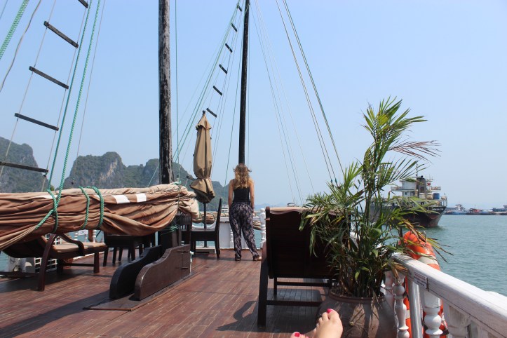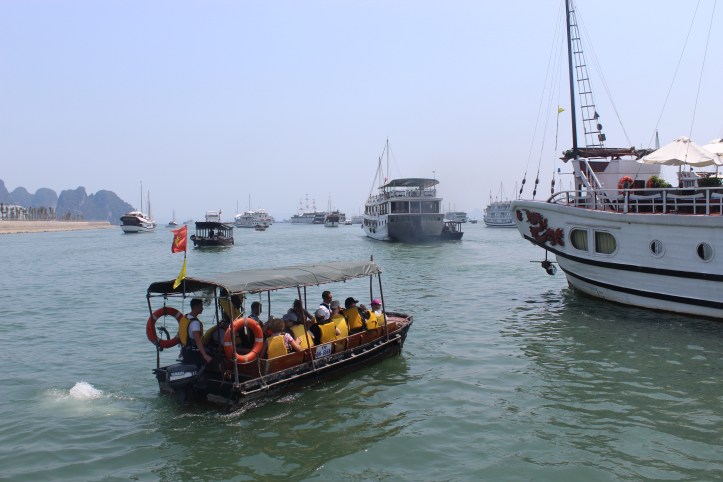 We arrived in Ha Long Bay and the boat crew was already waiting for us. We went on to hop on our beautiful boat, while many others were boarding their bigger boats for many occupancies. It was a beautiful scene from the beginning!