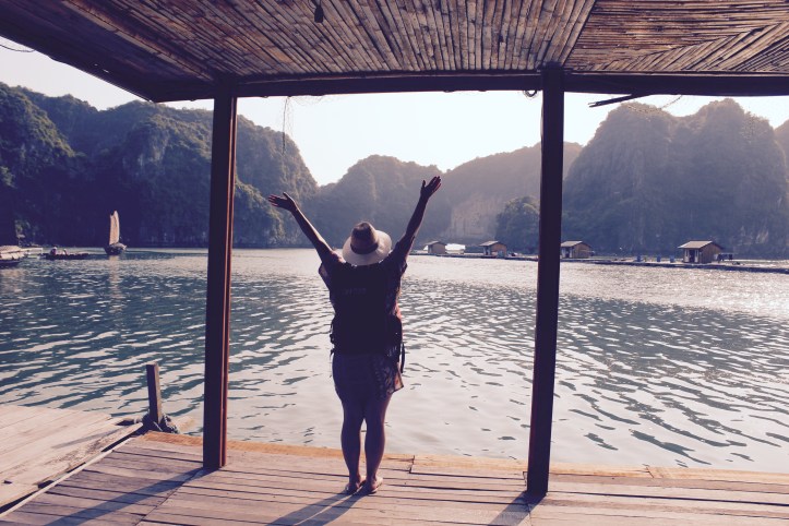 We enjoyed an amazing lunch on board, and then a short nap in the deck before making our first stop (when we actually just wanted the boat to continue!). We took a smaller boat, row around the bay, arriving at a fishing village museum—an interesting stop to see and understand Vietnamese’s’ life. The views were stunning, the way the sun covered us all was energizing, and the breeze made the little journey in the boat even more enjoyable!