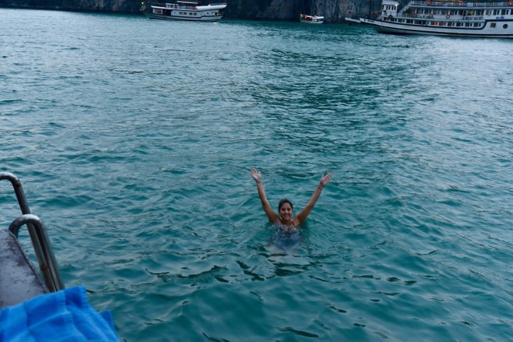 The next day, we started with a Ta Chi class- on the boat… We couldn’t ask for more! And then we went to one of the many caves.. the view from the top was the most beautiful part of this part of the tour!
