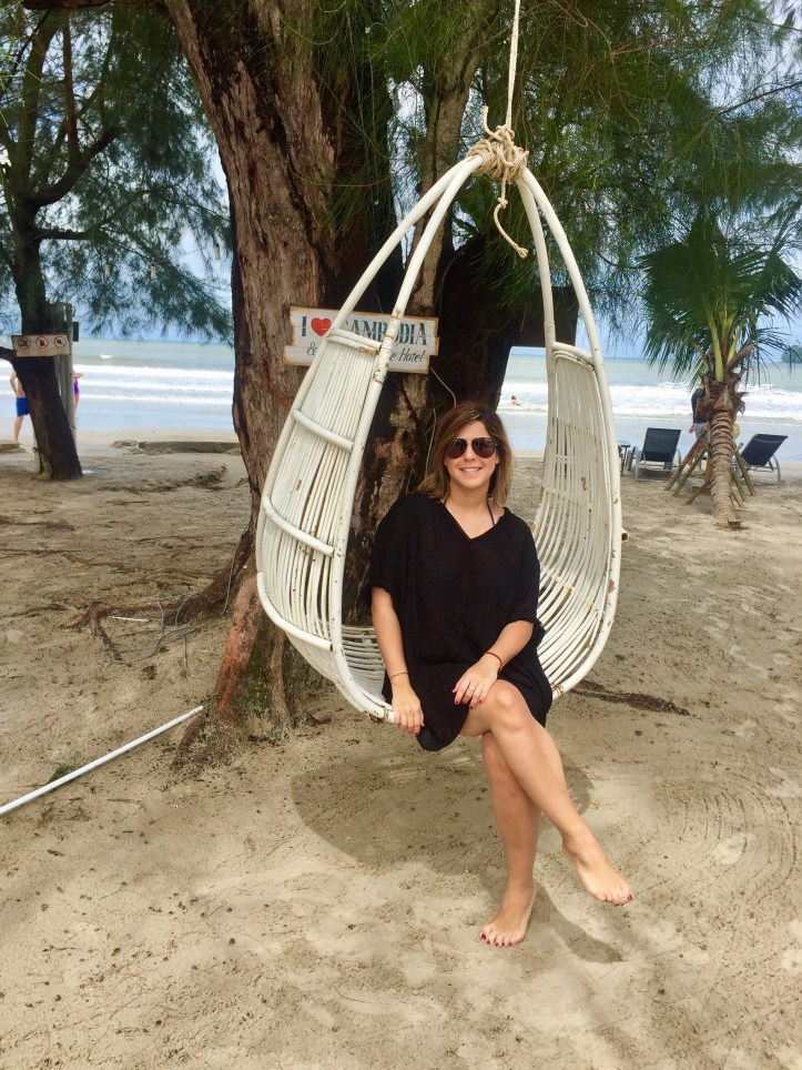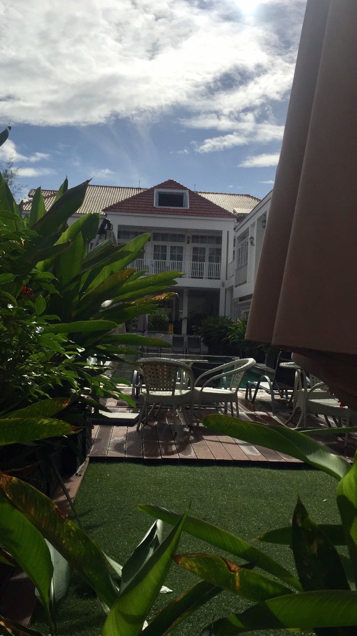 You have to flight to Phomn Phen, and from there is almost 4 hours by car!!! I know, it’s super far, but starting this September, there will be a direct flight from KL, not bad eh? The way by car is ok, there is a lot of traffic to get out of the city, and then later the highway is only two lanes, so a little bit dangerous when passing the cars. On the way, it started to rain like crazy, and it is because it’s raining season in Cambodia (something that I didn’t know until I got there :/). Got to the hotel and it was a super nice white boutique hotel along the beach, exactly as it is shown in the pictures featured in their webpage.