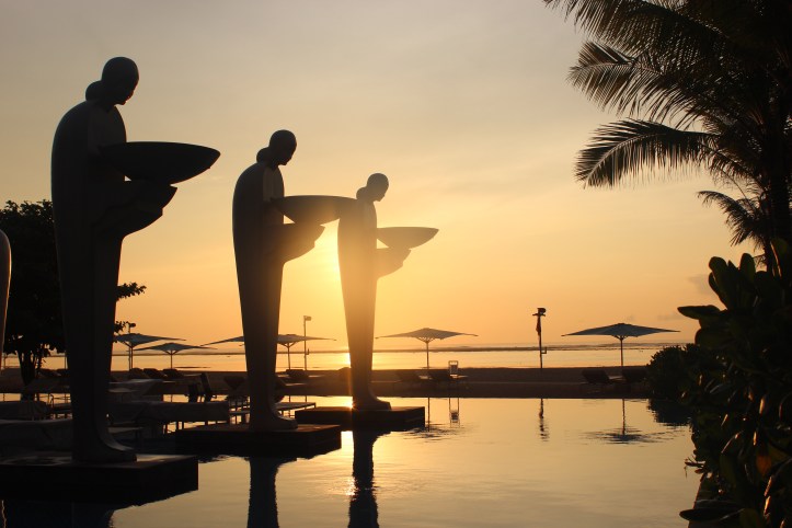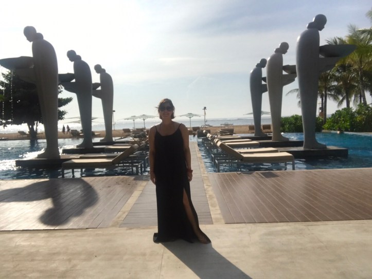 Arriving in Bali at noon on Friday was wonderful, totally sunny, with the sound of the sea and the sound of the trees following the movement of the wind, it was something that I definitely enjoyed from the moment I arrived. The Mulia succeeded my expectations with its perfect architecture, tall windows, decorations, and spectacular chandeliers… the ocean views from the pool, the food in the many restaurants they have, and these amazing statues that marvelously decorate all the pools around the Resort and Hotel, definitely make it the Best Beach Resort in Asia (By Conde Nast Traveler-Reader’s Choice Awards ).